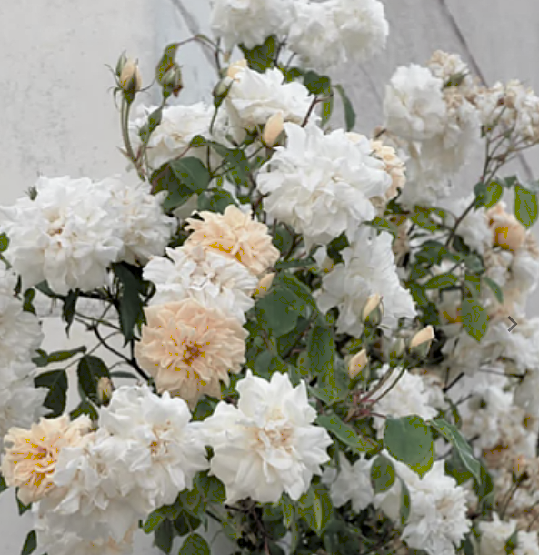 Le rosier grimpant ancien Jean d’un joli ton blanc crème au parfum léger, décorera à merveille murs, pergolas et tout autre support pour se couvrir d’une multitude de fleurs semi-double.