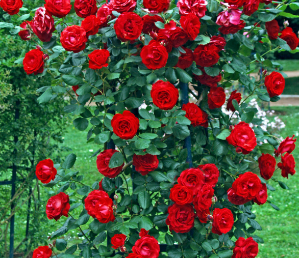 Le rosier grimpant Le Grand Huit® est issu du rosier buisson du même nom. Il réunit trois principales caractéristiques intéressantes : un fort parfum de fruits rouges, une belle végétation résistante aux maladies et des fleurs magnifiques bien formées d’un très beau rouge.